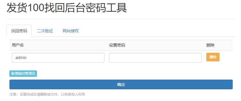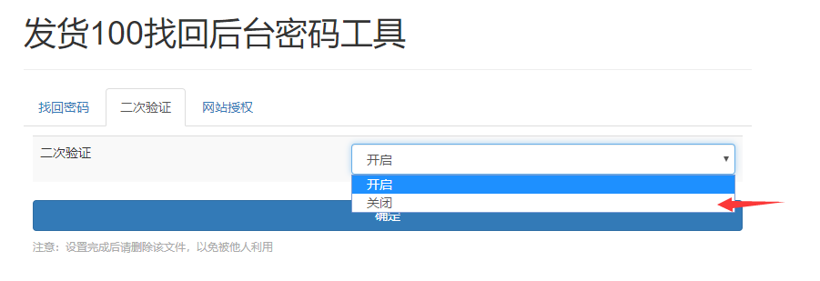 3.点击“找回密码”和“二次验证”两个选项卡即可重置后台密码和关闭二次验证。