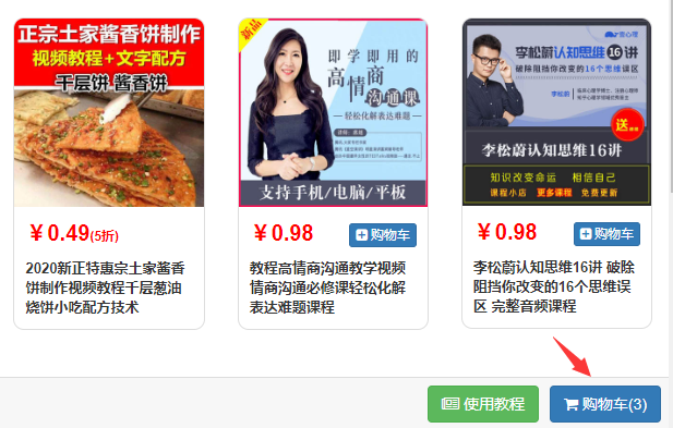 2.点击商品右侧的+购物车按钮,即可加入购物车