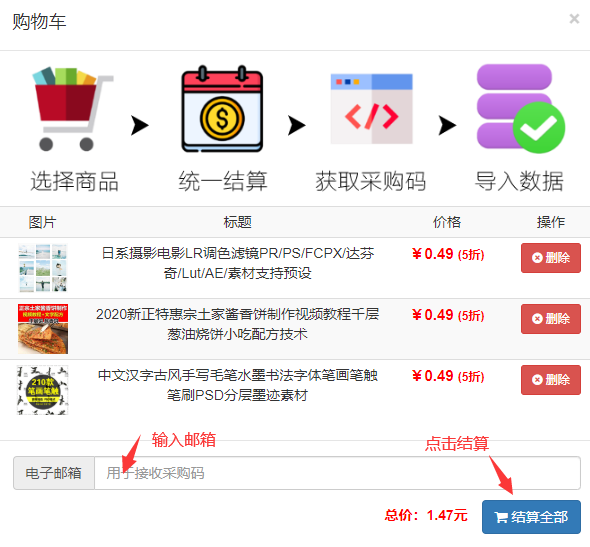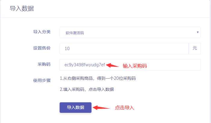 4.购买后会收到一个采购码,将采购码在您的网站后台填写,即可导入数据,如果数据较多请耐心等待