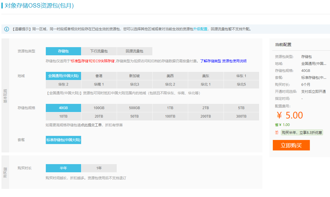 1.选择合适的套餐进行开通,资源包类型选择储存包