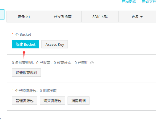 2.进入OSS控制面板,点击新建Bucket