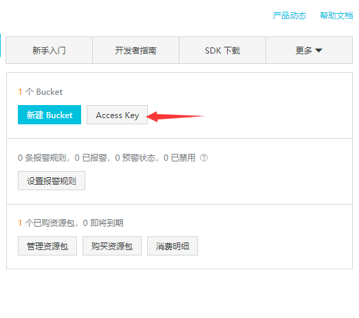 4.进入OSS控制面板,点击新建Access Key
