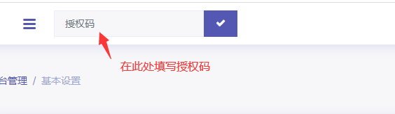 1.购买授权后,获得授权码,在网站后台顶部填写