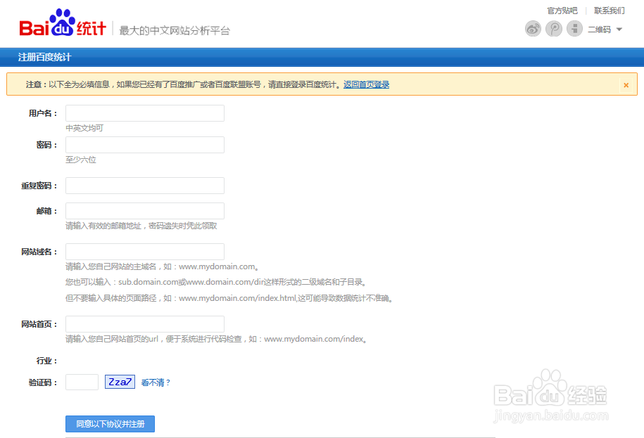2.来到以下页面,输入账户信息和网站信息,进行注册。