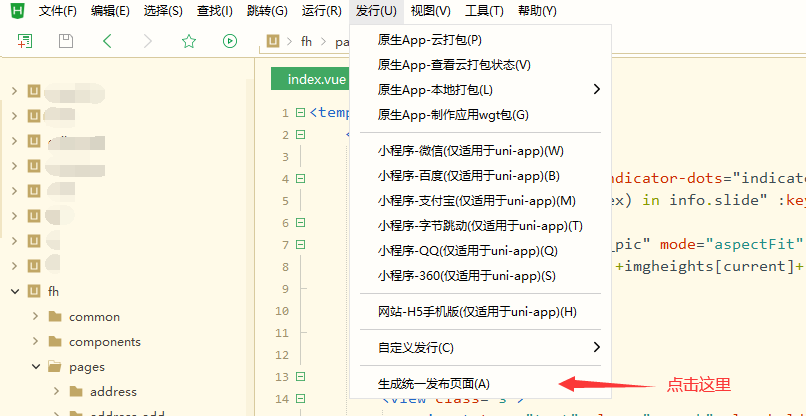点击工具栏的发行-生成统一发布页面 如果没有注册账号的话,需要先注册一个