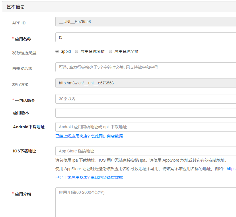 填写好应用的基本信息,比如名称,图标,截图等,然后就是上传各端的安装包或者二维码。