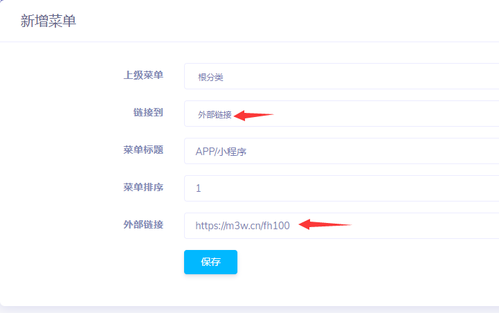 进入网站后台-系统设置-菜单设置,新建一个菜单。链接到选择外部链接,然后填写好发布页的地址即可