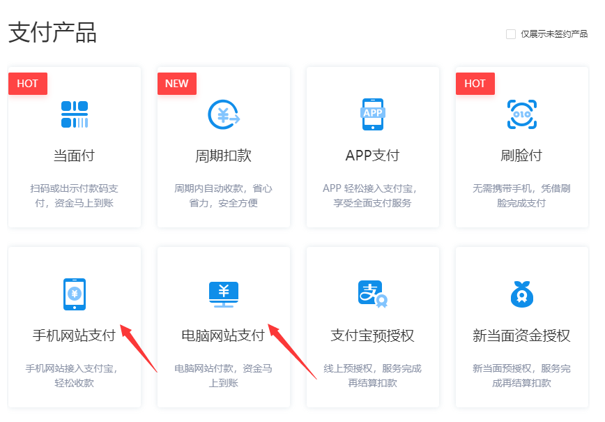 2.点击产品中心,点击开通电脑网站支付和手机网站支付