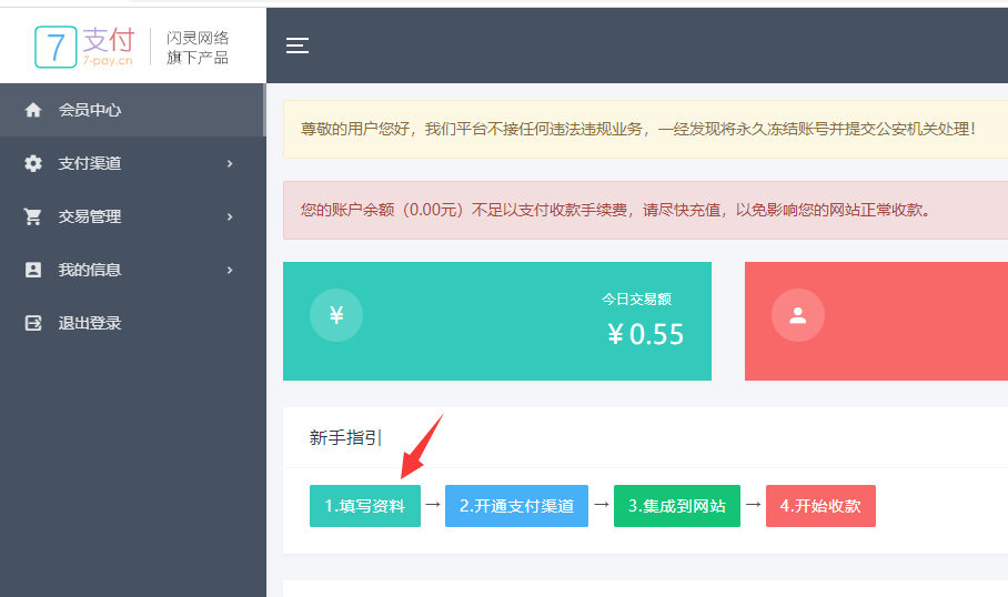 1.前往https://v2.7-pay.cn/reg.php注册一个会员帐号