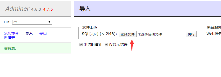 3.进入新网站数据库管理界面(http://你的新域名/admin/dbm.zip),点击导入SQL
