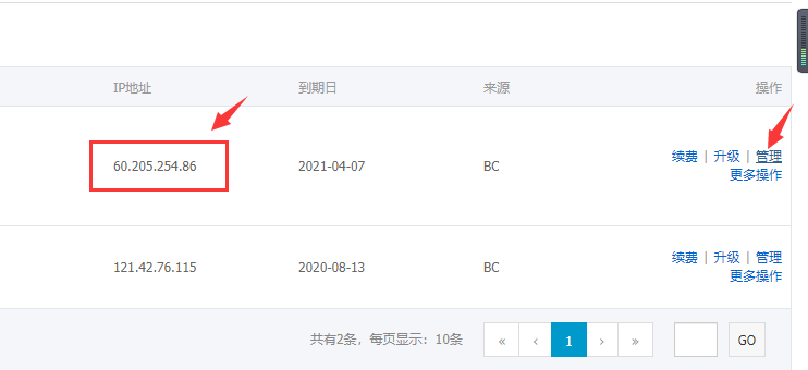 进入主机的控制面板,点击管理,同时记住主机的IP地址