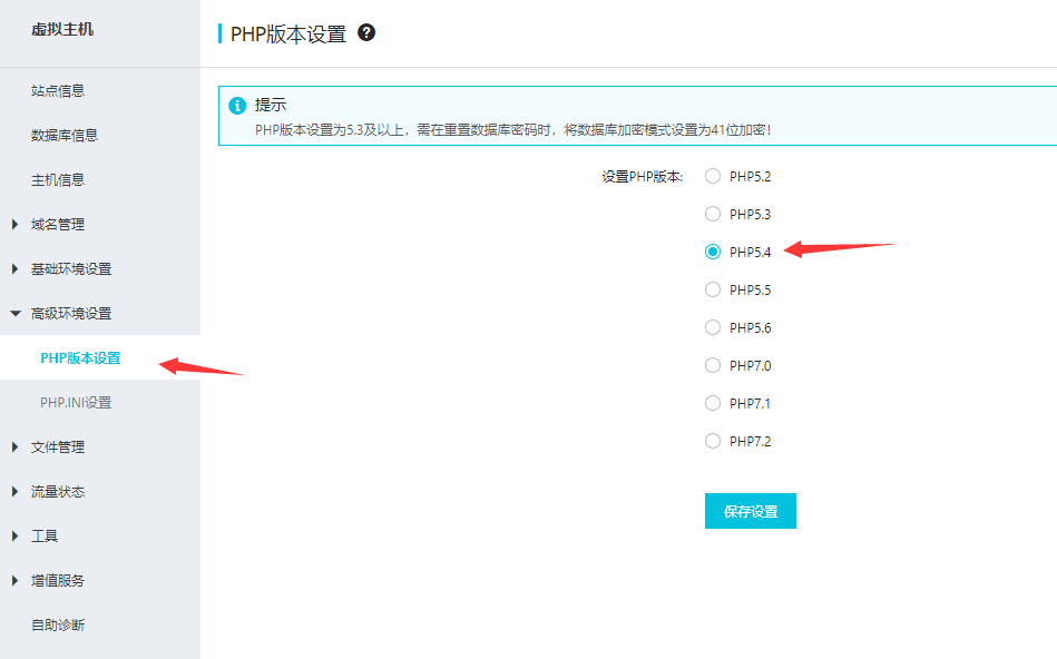 访问域名,会直接进入到安装界面(PHP版本需要支持PHP5.4或以上,如果版本过低,可以在主机的面板里切换)
