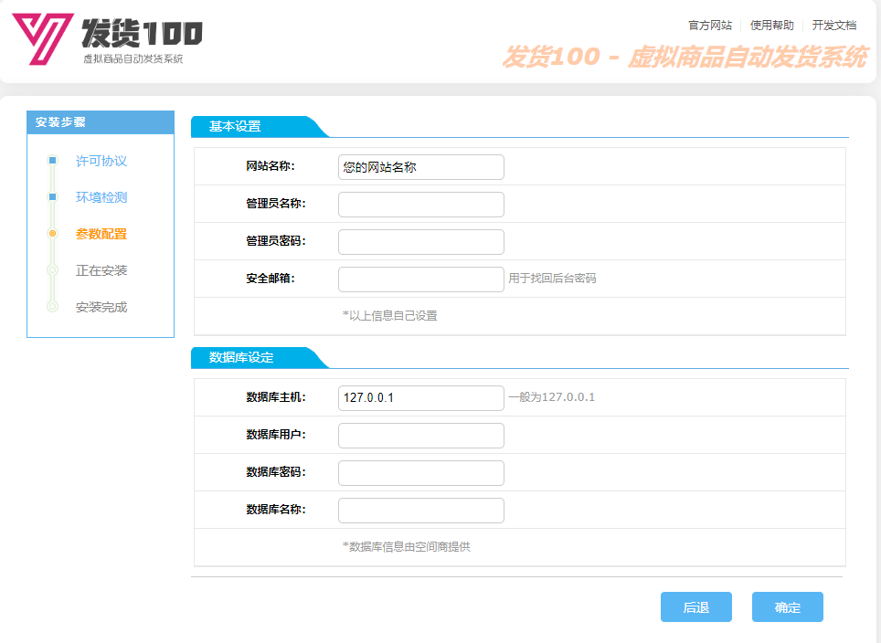 填写数据库信息(可以在虚拟主机的面板获取到)