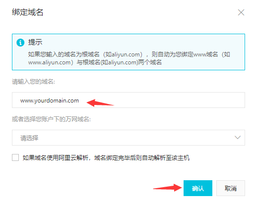 输入您的域名,点击绑定