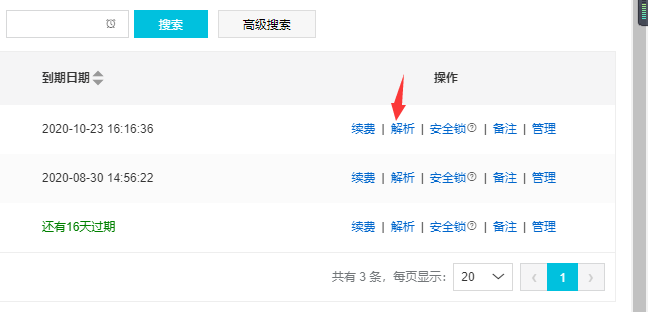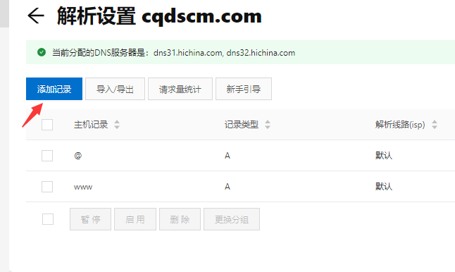 进入域名的解析面板,点击解析