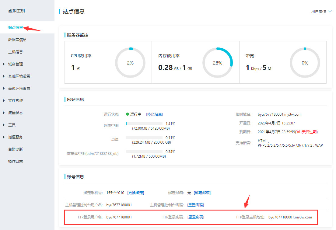 2.为方便新手操作,本教程会以虚拟主机为例进行说明,如果您购买的是服务器则不适合本教程